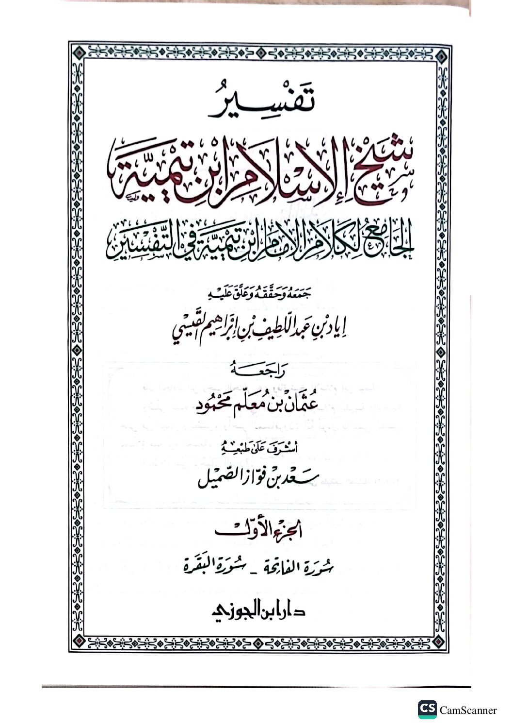 • تفسير ابن تيمية/. شيخ الاسلام ابن تيميه . 7 مجلدات . دار ابن الجوزي TAFSIR IBN TAYMIYAH