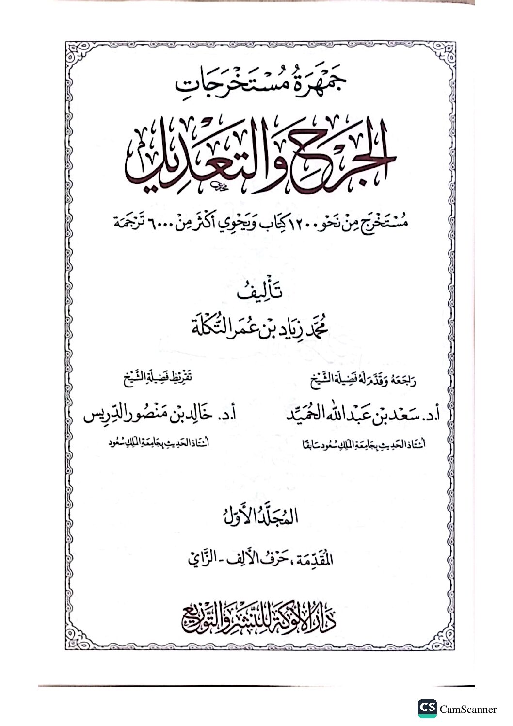 جمهرة مستخرجات الجرح والتعديل/محمد زياد التكلة 4 مجلدات .دار العلوم والتوزيع JAMHARA MUSTAKHRAJAT AL-ALJARH WA TA’DIL